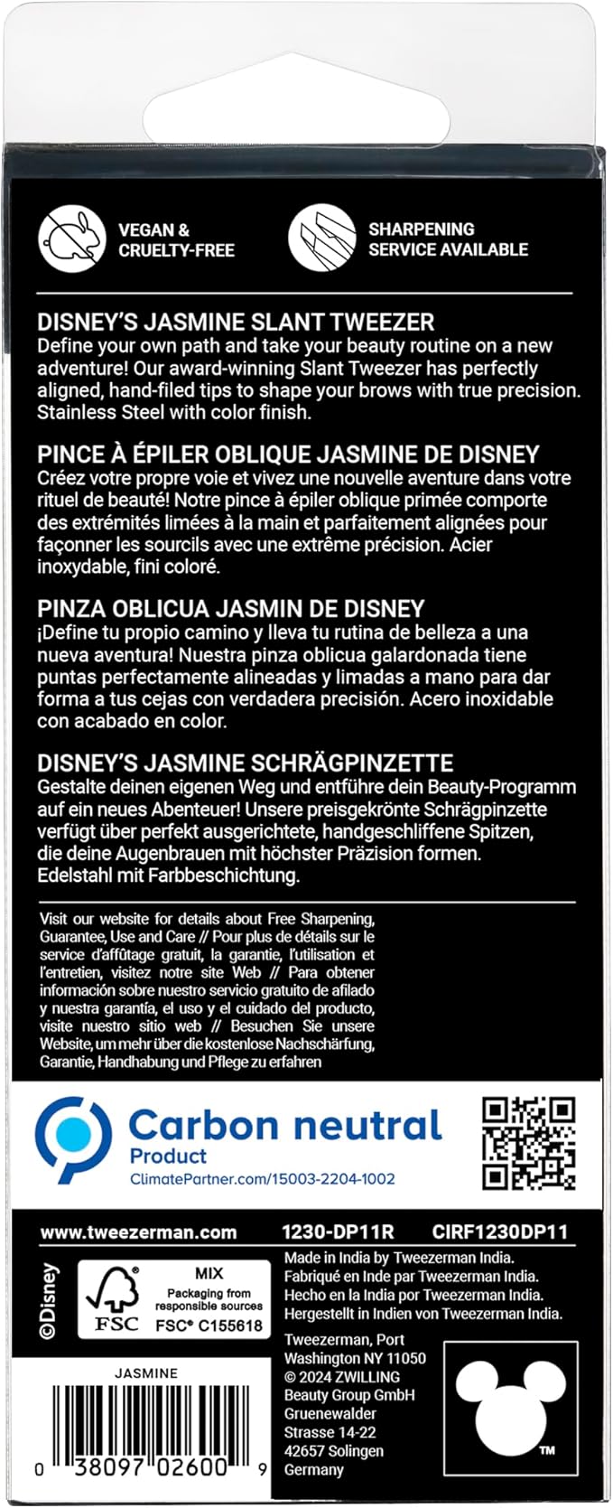 - Define your own path and take your beauty routine on a new adventure! Inspired by Disney's Princess Jasmine, our award-winning Slant Tweezer is hand-filed and perfectly aligned to shape your brows with true precision.