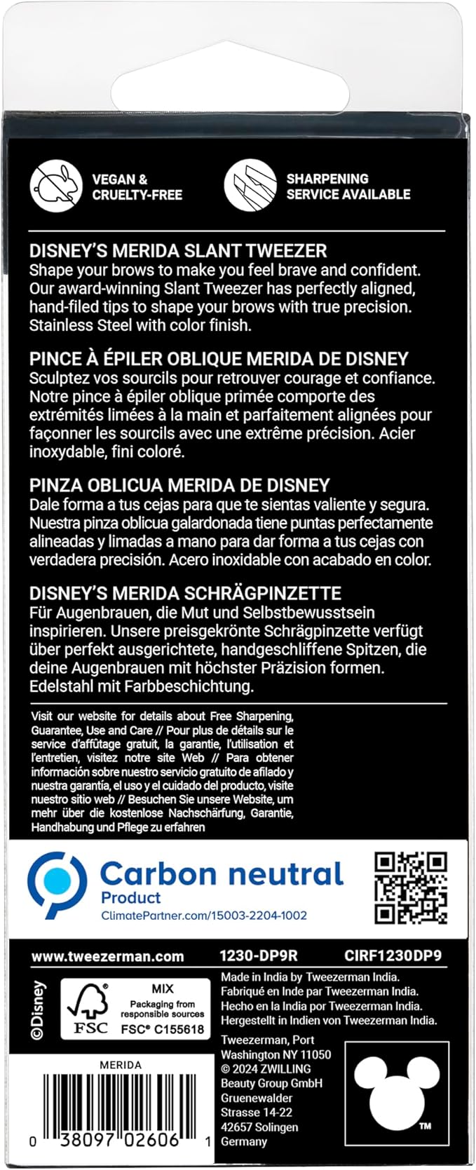 - This award-winning Slant Tweezer, featuring Disney's Merida will inspire you to shape your brows to make you feel brave and confident. Crafted with hand-filed and perfectly aligned tips to shape your brows with true precision.