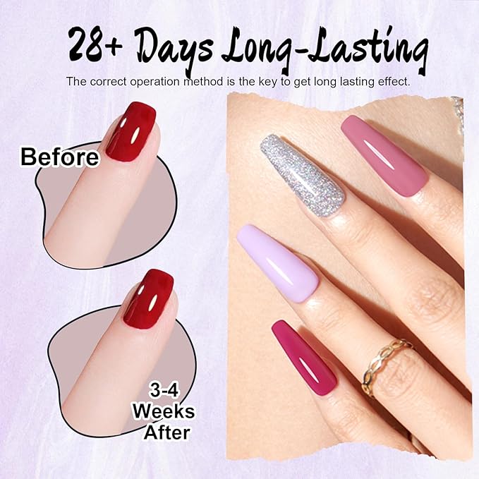 - 🧡【Long-Lasting Time】Can last up to four weeks with perfect shine and strong coverage. It’s also less likely to chip. While you have to hold your fingertips under a UV or LED light for at least 30 seconds to cure each of the three layers.