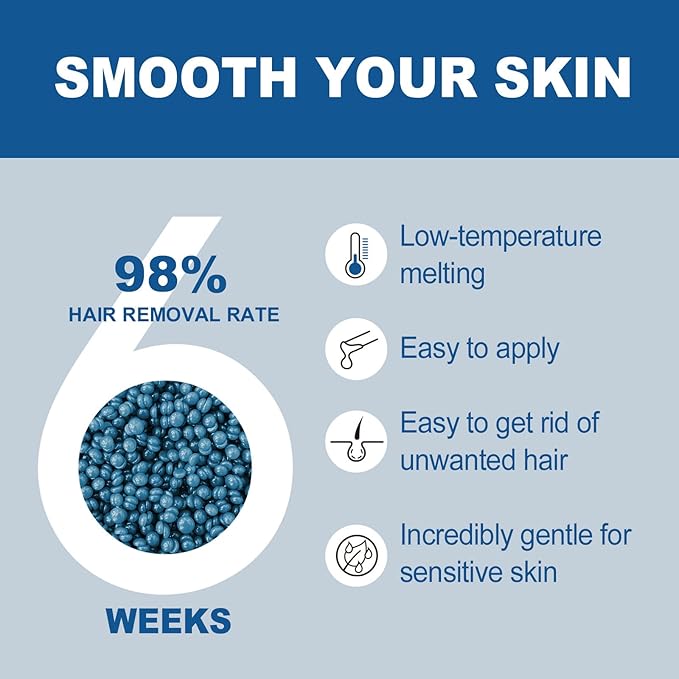 - Remove Hair From The Root: Hot wax hair bulk for hair removal with their excellent grip, ensuring thorough hair removal from the root, achieving a high removal rate of 98%. This means that you can not only enjoy immediate hair removal results, but also continue to have smooth skin for up to six weeks, No need for frequent hair removal. Our Wax beads refill can put in different warmer, If wax beans are scattered during transportation, please let us know