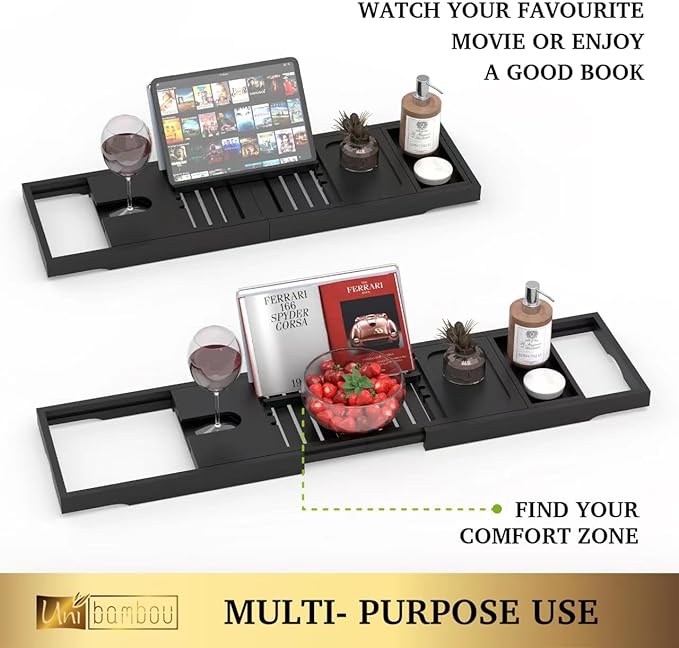 - đčRelaxing and Comfortable - Imagine what an enjoyable in this gorgeous bathtub caddy tray for bath with a glass of wine, fresh fruits , and favorite movie. The bathtub caddy tray for bath can make your bath time enjoyable and relax.