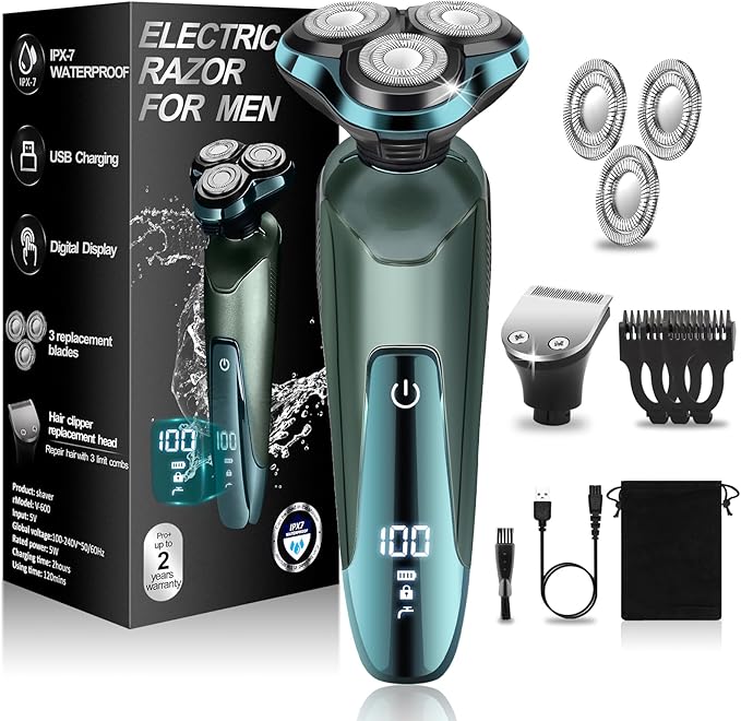 - 【New Upgrade Replacement Head】The men electric razor has 3 replacement blades, Easy to take off and replace a new head, just need 2 minutes. After installation, put a drop of oil on each nozzle and run for 10 seconds to get the best experience. It's recommended that you replace the shaving head every 12 months to get the max shave performance.