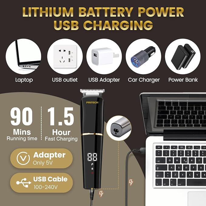 - PRITECH Beard Trimmer 6 in 1 Kit Electric Hair Trimmer,Cordless Nose Trimmer Mens Grooming Trimmer for Beard Head Face and Body Waterproof IPX6 USB Rechargeable LED Power Display(Black)