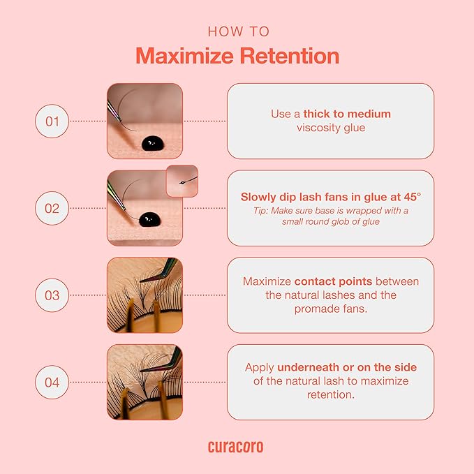 Curacoro LashFolio Double Spike Promade Fans, Handmade Volume Eyelashes, 5D To 10D, C CC D Curl, 0.03~0.07mm, 8-13mm Mix Length, Professional Long-Lasting Promade Lash Fans (7D-0.05 CC 8-13mm)