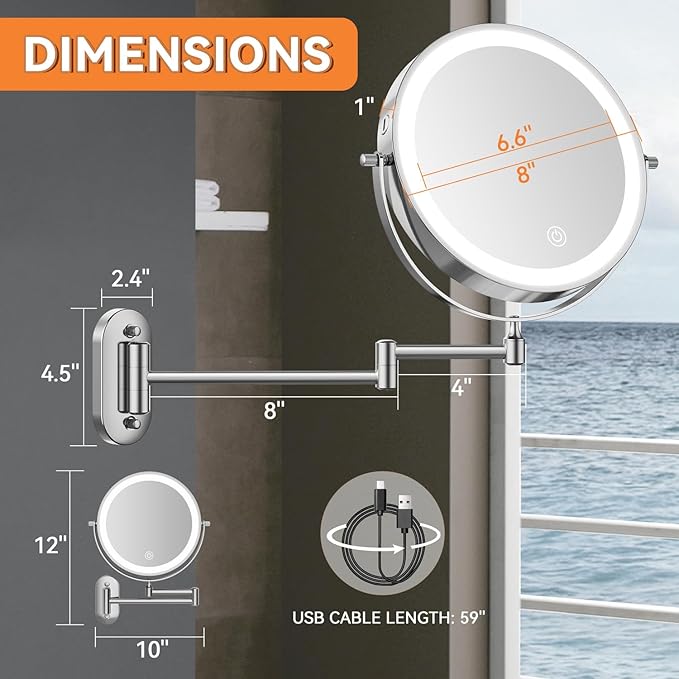 - ๐ซ๐ฏ๐ฒ๐ฌยฐ๐ฆ๐๐ถ๐๐ฒ๐น ๐๐ ๐๐ฒ๐ป๐ฑ๐ฎ๐ฏ๐น๐ฒ: It can be rotated 360ยฐ. The illuminated wall-mounted mirror with an extendable arm allows you to position your mirror for perfect viewing. Easily adjust the arm to your desired angle. When not in use, simply fold the mirror against the wall to save space.