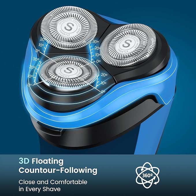 SweetLF Electric Shaver for Men, 3D Rotating Head, USB C Fast Charging, IPX7 Waterproof,Mens Razors with Pop Up Trimmer, Cordless Electric Razor for Men
