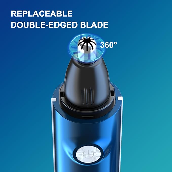 - 【Professional & Painless Nose Hair Trimmer】The nose hair trimmer uses a top-notch high-torque brushless micromotor, and the premium 13,000 RPM motor powers the 360° rotating dual-blade system. Equipped with a precision 360°double-edged rotating stainless steel blade. Intelligent design, allowing precise hair trimming. Fits snugly into the nasal cavity without pulling on nose hairs or damaging the inside of the nasal cavity. More anti-allergic, safer and more comfortable to use.