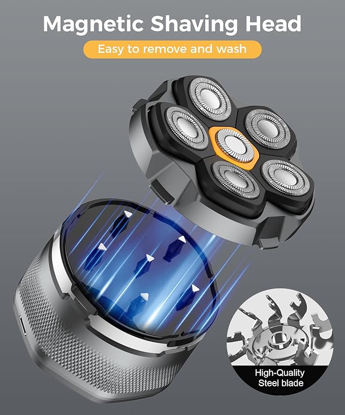 Head Shavers for Bald Men,Newly Designed Magnetic 6D Electric Razor, IPX8 Waterproof Dry/Wet, 10000 RPM High Speed Motor for Fast Shaving, USB-C Cable and Storage Bag for Home & Travel