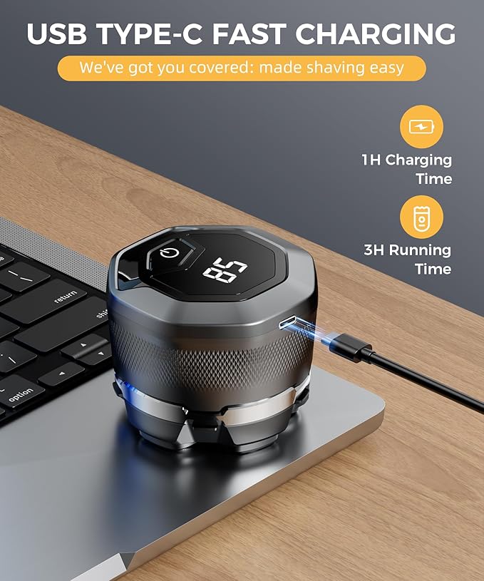 - Fast Charge and LED Display: This men's electric shaver with LED display makes it easy to know exactly what percentage of battery power you have with low battery alerts and trip lock settings. After a quick 60 minute charge, it can work for up to 180 minutes. Whether you're travelling on business or on holiday, so you don't have to worry about charging.