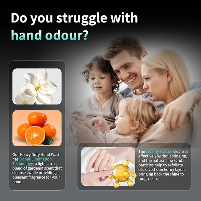 - 【Odour Removal Technology】- JUNGARIAN mechanic hand soap helps eliminate the unpleasant oil and grease smell, making you feel more comfortable or confident when interacting with other people. Citrus blended with jasmine leaves your hands fresh, clean and fragrant. A hands soap that really cares for hard-working hands