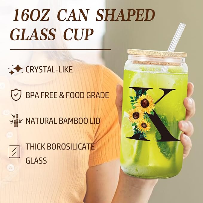- TOTE BAG & MAKE UP BAG & GLASS CUP GIFT SET: Frerdui SUNFLOWER PERSONALIZED BIRTHDAY GIFTS for friends mom contains 3pcs initial custom items. Ideal as personalized gifts, monogrammed gifts, initial gifts, and sunflower gifts for women on mothers day, birthday, valentines day, thanksgiving, christmas, etc.