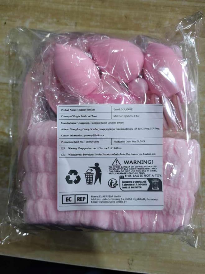 - Package Included: 25pcs Professional Makeup Brush Set With 6pcs makeup sponges, 3pcs triangle powder puff, 3pcs mini thumb puff, 1pcs cleaning mat,3pcs face wash headband wristband set and a toiletry Bag.