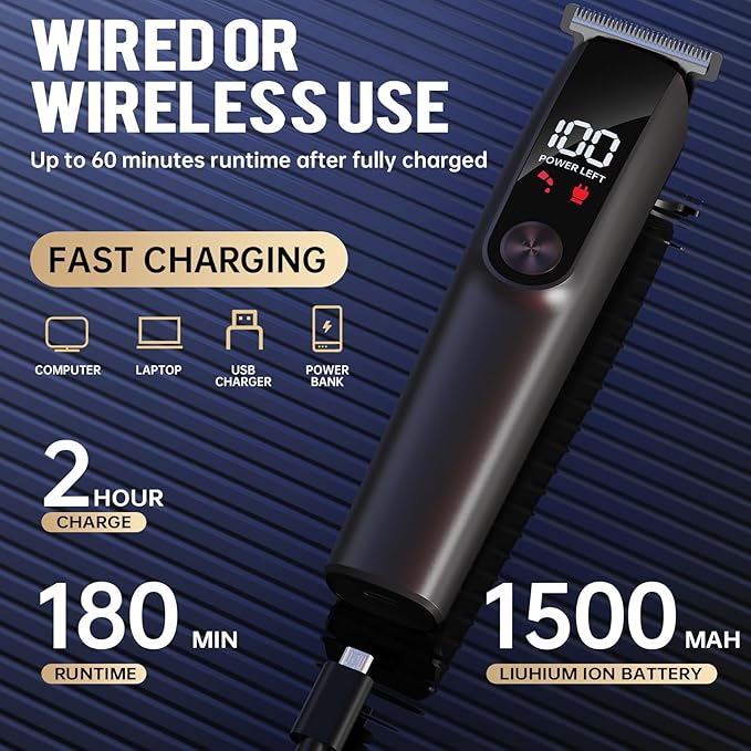 - 【Long battery life with LED display】: These high quality rechargeable trimmers are equipped with a powerful lithium-ion battery. It takes only 1.5 hours to charge and can be used for up to 90 minutes! The user-friendly LED display shows the remaining power level and reminds you to recharge in time.