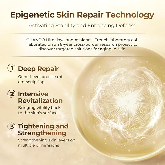 - Advanced Skin Care with Cutting-Edge Technology: Developed through 8 years of collaboration between CHANDO Himalaya and Ashland, this epigenetic skin repair technology offers targeted anti-aging solutions for skin. Luxuriously smoothes skin imperfections, revitalizes the skin's surface, and delivers firm, smooth skin from within.
