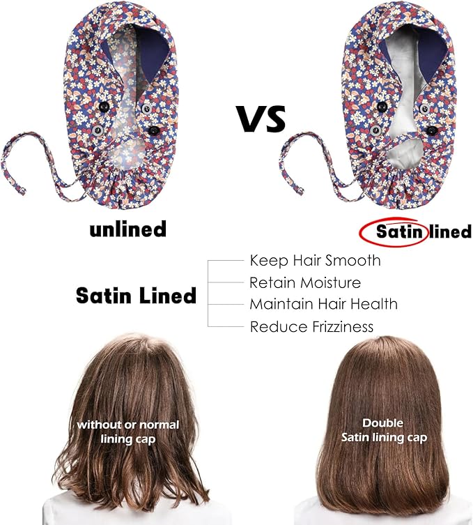 - 【Satin Lined Scrub Hats Women】: Check out these scrub caps women! Our scrub caps are handmade with a satin lining that provides excellent protection for hair, effectively reducing issues like breakage or frizz during long hours of work