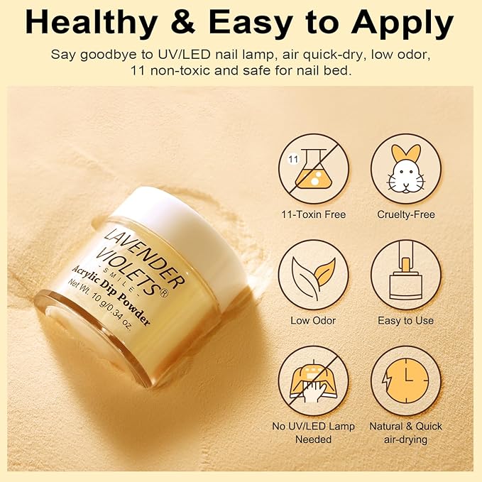 - Efficient Dipping Powder Starter Kit: Save time with this dip powder starter kit—no nail lamp needed. The dip powder dries on its own within 30 seconds with the activator, reducing dips nail art application time by 25% and preventing skin darkening.