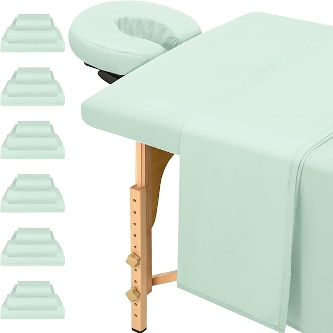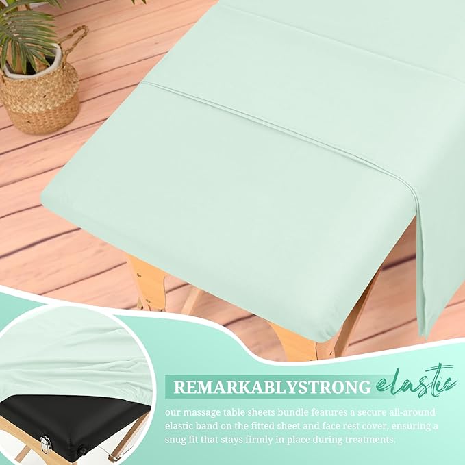 - 【Microfiber Massage Table Sheets Sets】:You will get set of 6 Sage Green massage table sheets sets, includes 6 pack fitted sheet 36"W x 77"L x 7"H, 6 pack flat sheet 63" W x 100" L and 6 pack face cradle cover 13" W x 13"L x 5"H.The soft material provides silky, breathable comfort for your clients.