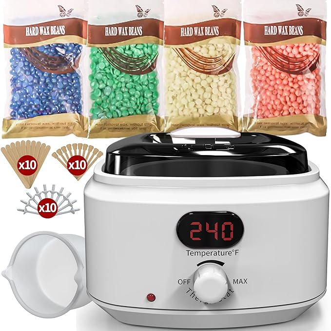 - Precise Temperature Control: Equipped with a precise temperature display, quickly melts 100g of wax beads in 10-15 minutes, providing fast service for busy customers and more even heating, the constant temperature setting helps the wax beads stay melted and sticky throughout the process