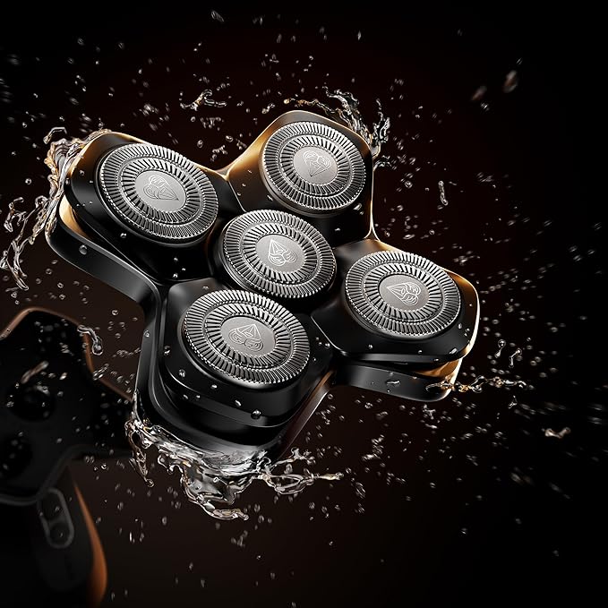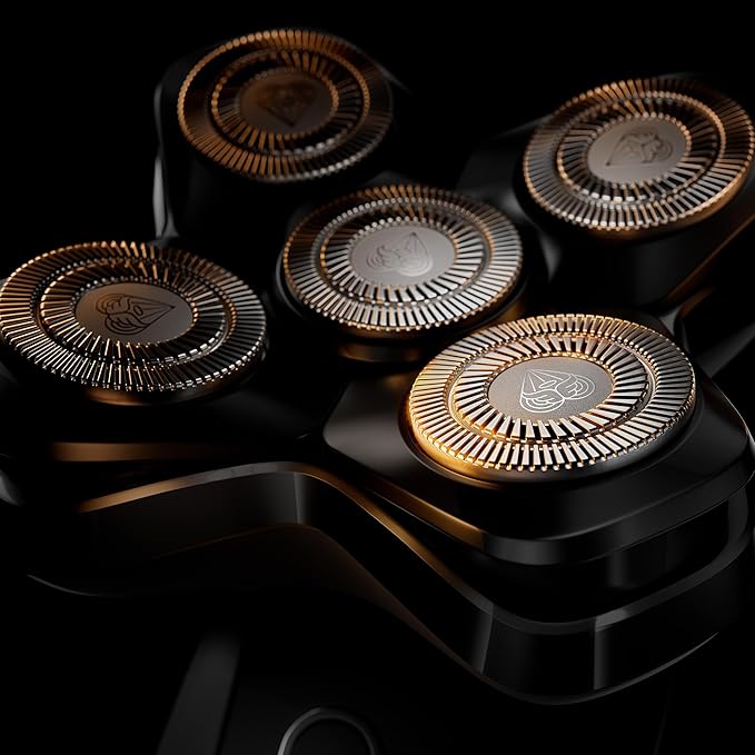 - COMFORTABLE GLIDE: Five stainless-steel SkinSafe rotary blade heads float over bumps and curves providing a smooth shave. With FlexAdjust technology, each blade stays in close contact with the scalp. *SkinSafe Technology does not guarantee cut protection.