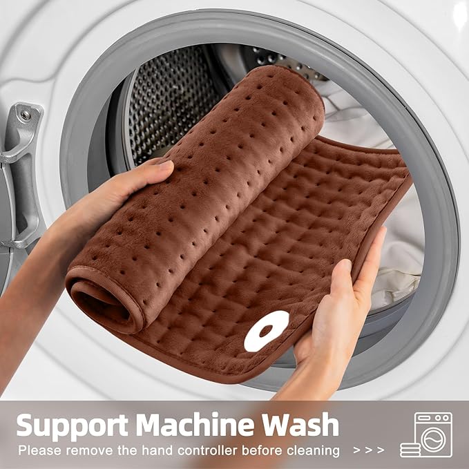 - Heating Pad for Back Pain Relief: Our electric heating pad delivers a steady stream of heat to target affected areas, easing back pain, cramps, and muscle tension effectively. It’s perfect for soothing sore muscles in the back, shoulders, abdomen, neck, knees, and legs. The heating pad is machine washable for easy maintenance, but please refrain from tumble drying, as it may damage the plush fabric