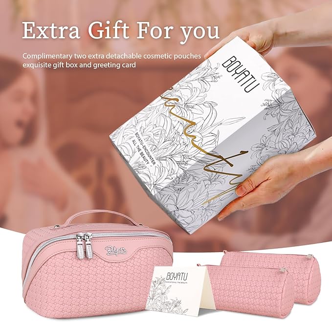 - Exquisite packaging: This travel make up bags for women comes beautifully packaged in an exquisite gift box, with a thoughtfully designed greeting card. It will be a great gift for ladies on Valentine's Day, Mother's Day, Birthdays, Christmas,Thanksgiving Day, Anniversary Day and more.