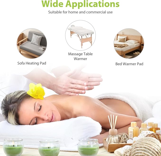 - 【Overheat Safety Protection】Equipped with overheat protection system, massage table heating pad can automatically turn off when the temperature is too high, which provides the safety guarantee for every user.