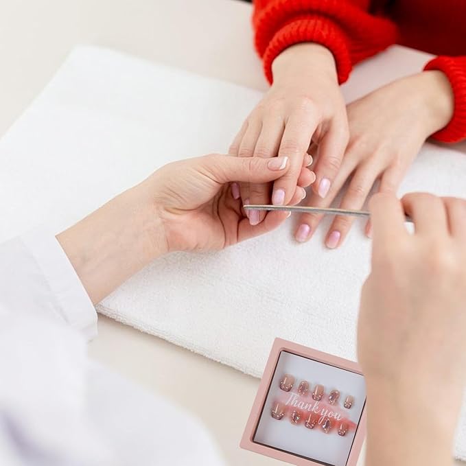30 Pcs Press On Nail Packaging Nail Boxes Storage Display Box with 90 Pcs Adhesive Double Sided Tape with 30 Pcs Thank You Display Cards or Nail Salon Pink