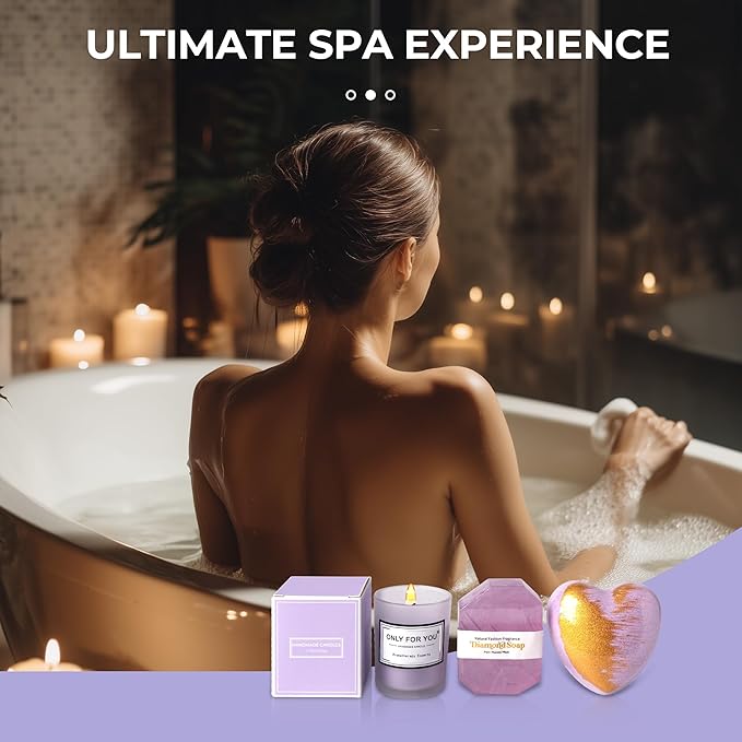 - Exclusive Women Spa Gifts Set:4.2 ounces blue wind chime scented candle, made of pure plant essential oils and 100% natural soy wax, non-toxic, smokeless. Nutritious and soothing oatmeal handmade soap, two exquisite bath bombs (freesia and rose), all release gorgeous and lasting luxury fragrance, will bring her exquisite and luxurious home self-care spa experience.