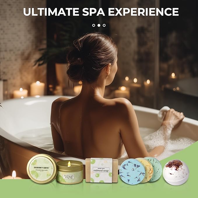 - Exclusive Women Spa Gifts Set:4.2 ounces blue wind chime scented candle, made of pure plant essential oils and 100% natural soy wax, non-toxic, smokeless. Nutritious and soothing oatmeal handmade soap, two exquisite bath bombs (freesia and rose), all release gorgeous and lasting luxury fragrance, will bring her exquisite and luxurious home self-care spa experience.