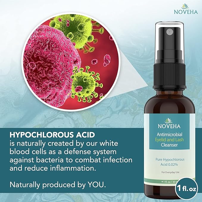 NOVEHA Eyelid and Lash Cleanser - Fast Acting Soothing Formula, Effective Relief from Irritation, Dry Eyes, Styes, Pure and Gentle Hypochlorous Acid Spray, 30mL (2 Pack)
