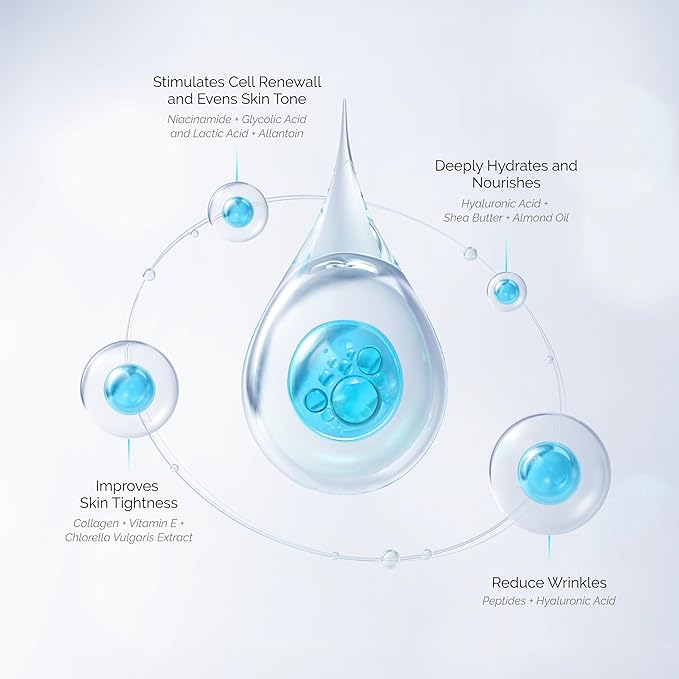 - 5️⃣ Multiple benefits, visible results in 2 to 4 weeks with consistent use: Experience hydration, wrinkle reduction, improved elasticity, and a refreshed complexion. Use 2–3 pumps on cleansed skin, morning and night, as the final step in your skincare routine.
