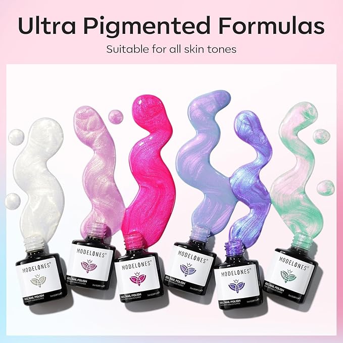 - Salon Quality & Healthy: Modelones Trend Shimmer Gel Nail Polish Set features healthy and 11 toxin-free ingredients, safe and has low odor. No harsh ingredients or adhesives that lead to damaged nails, anti-chipping, low odor and skin-friendly. Satisfy your different needs on any occasion, you can DIY your nails anytime