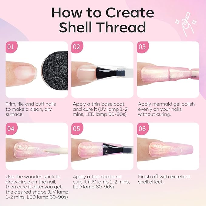 - NOTE: It is normal for the gel to be a little sticky, in order to better draw the thread effect. Mermaid Limited Edition Gel Polish: This Pearl Gel Nail Polish Set includes 6* 7ML ( 0.24 fl oz) gel polish + 1* Wooden Dotting Pen. Modelones well-selected 6 gorgeous shades of the most iconic and trendsetting all-new colors. Flawless coverage these glitter gel nail polish and your nail would look brilliant shine finish and more attractive. Can get Swirl Shell Thread effect with the Dotting Pen