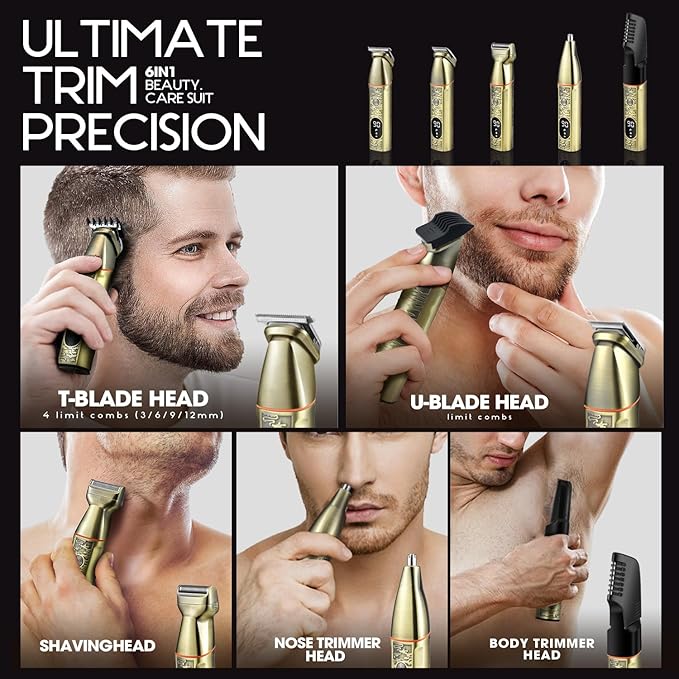 DSP 6 in 1 Man's Grooming Kit, Clipper and Trimmer Set, Trimmer Professional Barber, Shaving Mustache, Body, Nose Hair Trimmer, Waterproof IPX6, U-Shaped Hair Clipper