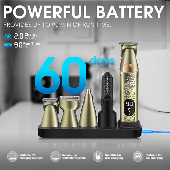- Ultimate Grooming Precision: Elevate your grooming regimen with DSP's 6-IN-1 Grooming Kit, tailored for the modern man. This comprehensive set includes high-quality hair clippers for men, an adjustable beard trimmer, a professional hair cutter, and dedicated trimmers for detailed styling. Its DSP clipper and trimmer, equipped with premium 420J2 blades, ensure professional barber-quality precision right at home.