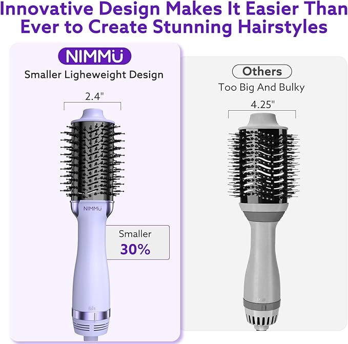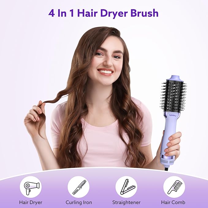 Nimmu Hair Dryer Brush Blow Dryer Brush in One, 4 in 1 Hair Dryer and Styler Volumizer for Drying Straightening Curling Volumizing Hair, Upgraded Hot Air with 2.4” Oval Barrel, Purple