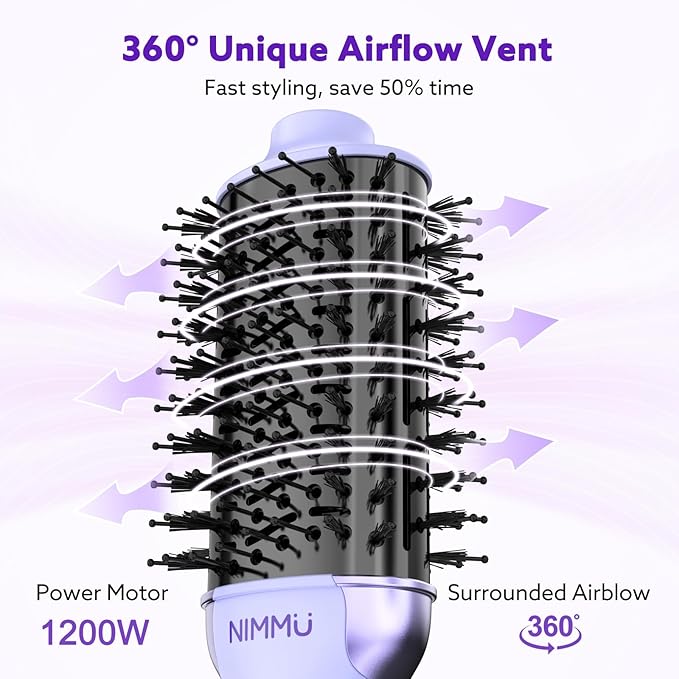 - 【Professional Salon Effect】This hair dryer brush is equipped with an innovative 360° vent and 1200W powerful motor, which can bring you gorgeous salon-level blow-drying results in less time. The unique 360° ventilation design provides a 50% larger drying area, ensuring more efficient drying and helping to reduce frizz problems.