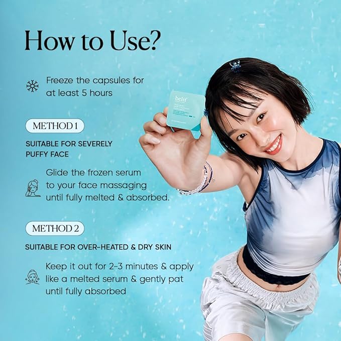 - 🧊 FREEZE THE CAPSULE, COOL DOWN YOUR SKIN: Freeze capsules for at least 5 hours. After cleansing and toning, open a capsule and apply the frozen serum to your face, avoiding the eye area, until melted. Enjoy a cooling, soothing skincare experience.