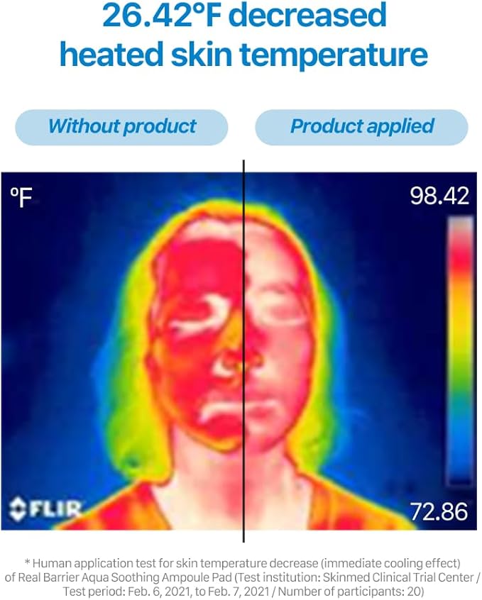 Real Barrier Aqua Soothing Ampoule Pad, 70 Pads, Cooling Soothing Facial Pad Mask for Redness Relief, Skin Barrier Repair Face Moisturizer with Hyaluronic Acid for Sensitive Dry Skin, Korean Skincare
