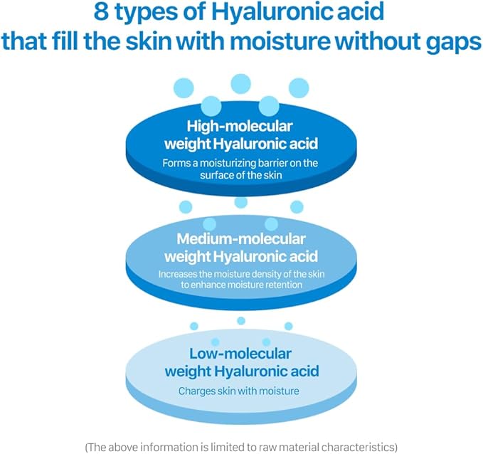 - MULTI-DEPTH HYDRATION FACE MOISTURIZER: High-molecule Hyaluronic Acid builds a moisture barrier. Medium molecule Hyaluronic Acid improves skin elasticity and moisture density, reinforcing moisture storage function. Low molecule Hyaluronic Acid provides moisture inside the skin