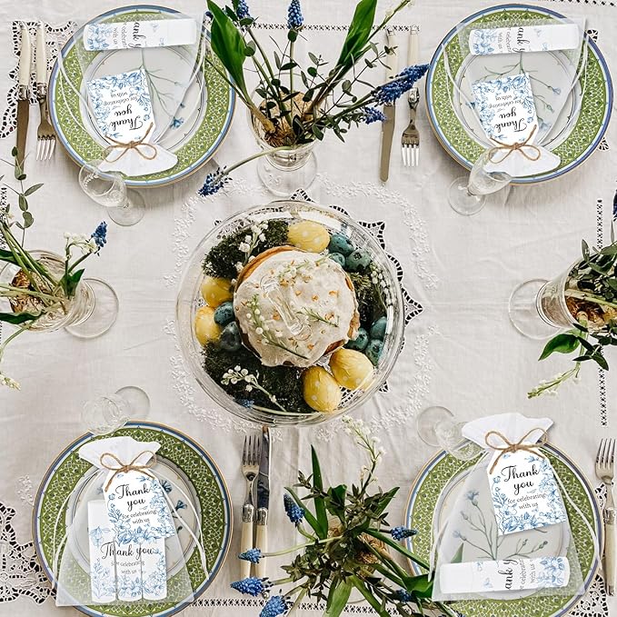 - Comprehensive Package: Our blue flower Theme lip balm party favors include 50 lip balms, 50 organza bags and 50 thank you cards, adequate quantity can meet your gifting needs for baby shower, bridal shower or other parties