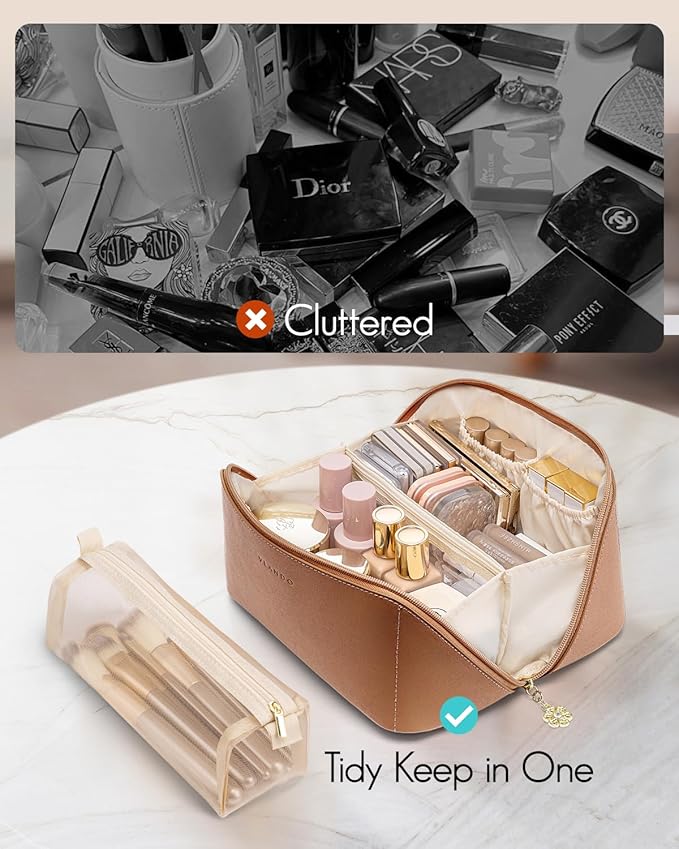 - Gift Ideals:This brown portable makeup bag can be used as a cosmetic travel bag, a toiletry bag. A ideal gift for birthdays, anniversaries, graduation,wedding,valentines day for mom,teen girls,daughter,friends.