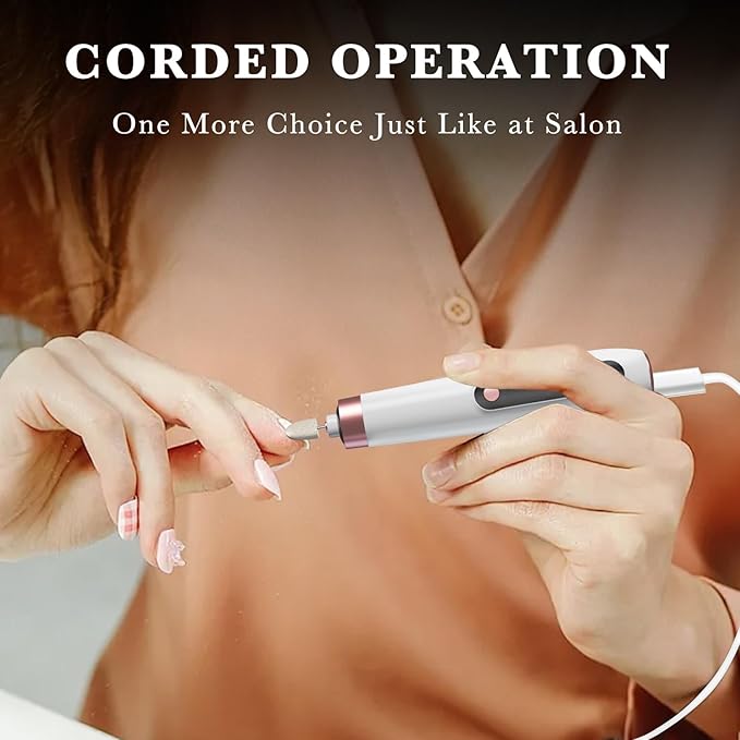 - 【10 Adjustable Speeds & Dual Rotation】 Featuring 10 customizable speed settings, this electric nail file offers tailored manicures and pedicures for anyone in the family. It rotates both clockwise and counterclockwise, making it easy to use whether you're right- or left-handed, for a professional salon experience at home.