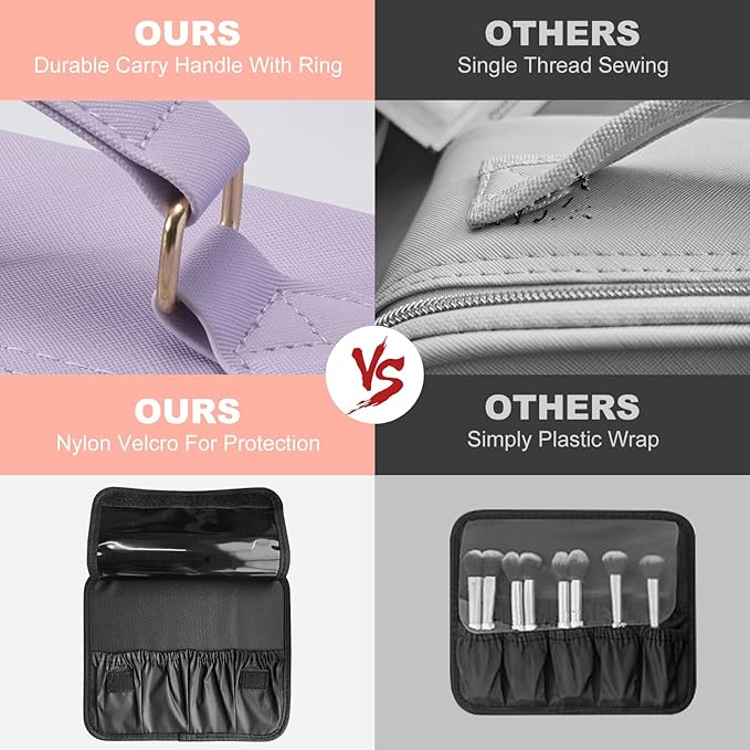 - 👍【Flexible and Large Storage Space】:Reasonable design makes the makeup bag easy to carry, not only can you store cosmetics and makeup tools, but also jewelry, electronic accessories, camera accessories, toiletries, etc. Removable EVA sponge divider Can DIY the space you need to meet your needs. Can accommodate a variety of sizes of cosmetics and makeup brushes. Which can well protect the cosmetics inside, ensure no breakage or leakage, and also keep them clean and dry.