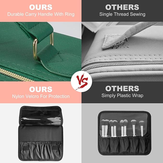 - 👍【Flexible and Large Storage Space】:Reasonable design makes the makeup bag easy to carry, not only can you store cosmetics and makeup tools, but also jewelry, electronic accessories, camera accessories, toiletries, etc. Removable EVA sponge divider Can DIY the space you need to meet your needs. Can accommodate a variety of sizes of cosmetics and makeup brushes. Which can well protect the cosmetics inside, ensure no breakage or leakage, and also keep them clean and dry.
