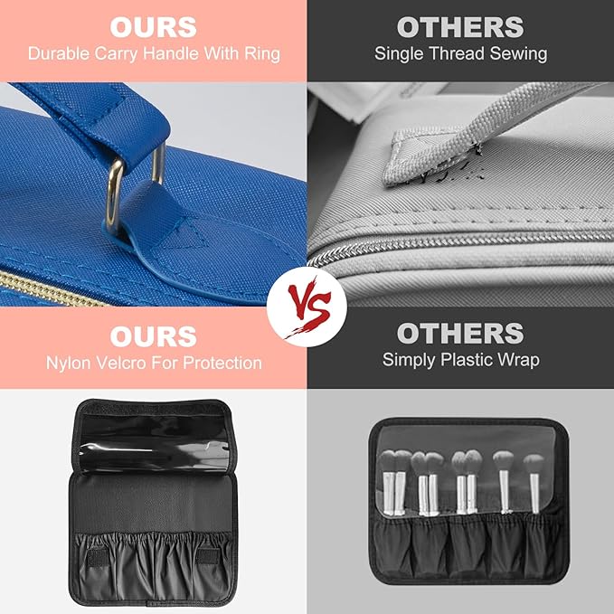 - 👍【Flexible and Large Storage Space】:Reasonable design makes the makeup bag easy to carry, not only can you store cosmetics and makeup tools, but also jewelry, electronic accessories, camera accessories, toiletries, etc. Removable EVA sponge divider Can DIY the space you need to meet your needs. Can accommodate a variety of sizes of cosmetics and makeup brushes. Which can well protect the cosmetics inside, ensure no breakage or leakage, and also keep them clean and dry.