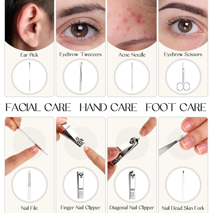 - Manicure and Pedicure Set: the package contains 24 sets of nail kits, including manicure and pedicure tools, such as nail clippers, tweezers and other tools for hand care, facial care, and foot care, sufficient for your daily use