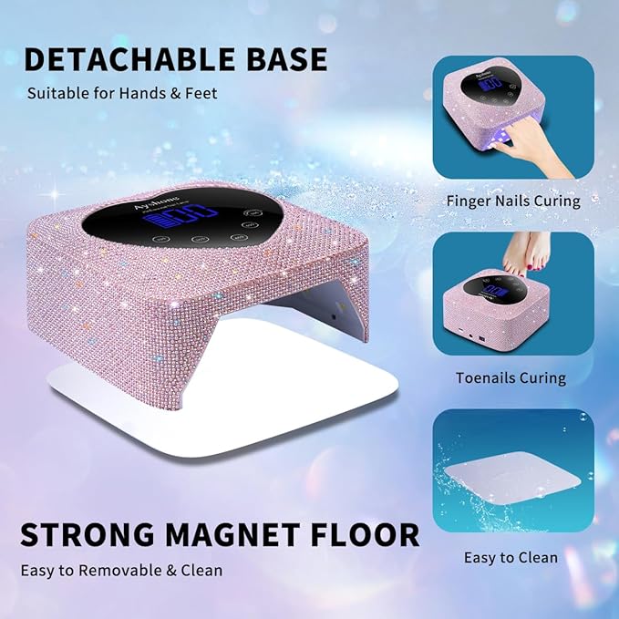 - 【Detachable Base & Large Space】The rechargeable nail dryer has a removable magnetic base that makes it easy to remove and clean, and the large space ensures cure five fingernails or toenails. In addition, the metal mirror base can better refract the light source and quickly dry the nails. It is ideal for professional salon and home use.