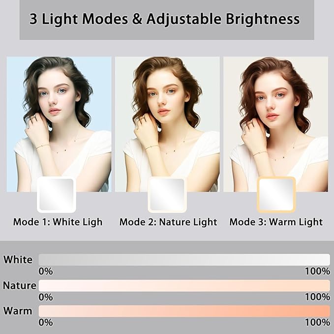 - 【makeup case with lighted mirror】large capacity travel makeup bag with led mirror is made of pu leather,strong, ruggedness, waterproof and resistant, easy to clean.the travel makeup bag with vanity mirror of led light 3 color setting. 0-100% adjustable brightness that can be switched. with a long press on the switch, and a short press can adjust the color temperature between cool, natural and warm light.the make up bag can protect your cosmetics well, whether you are traveling or be away on official business, you can take your dresser everywhere.