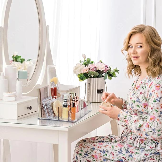 - Clear Makeup Organizer Cosmetic Storage for Dresser Countertop and Bathroom Vanity Beauty Holder for Lipstick Brush Skincare